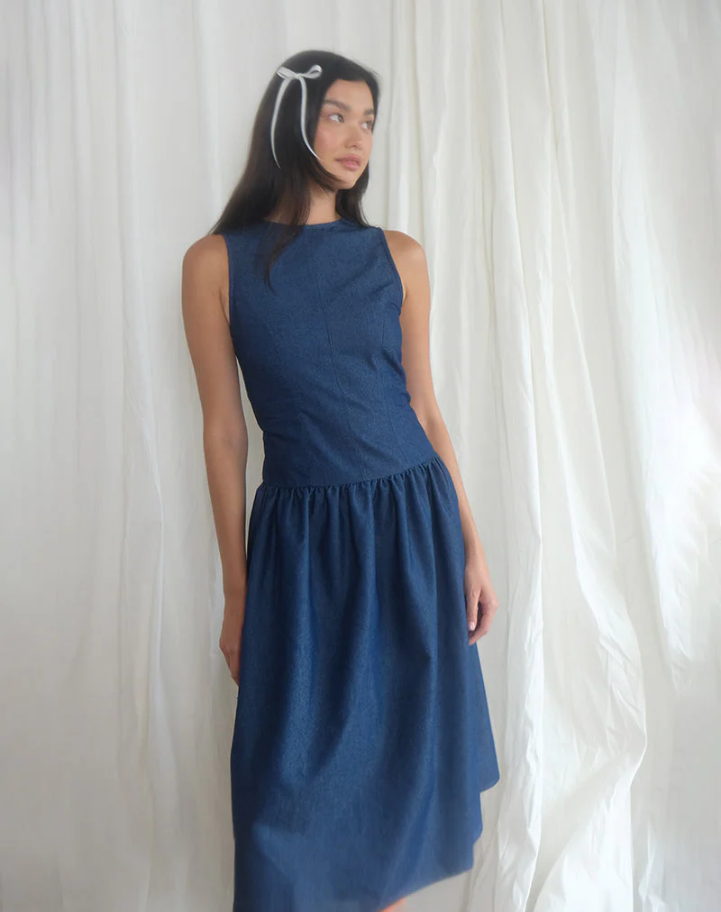 Krista Maxi Dress in Poplin Navy