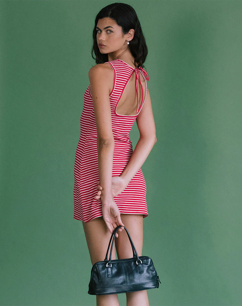 Masha Mini Dress in Red and White Stripe Jersey