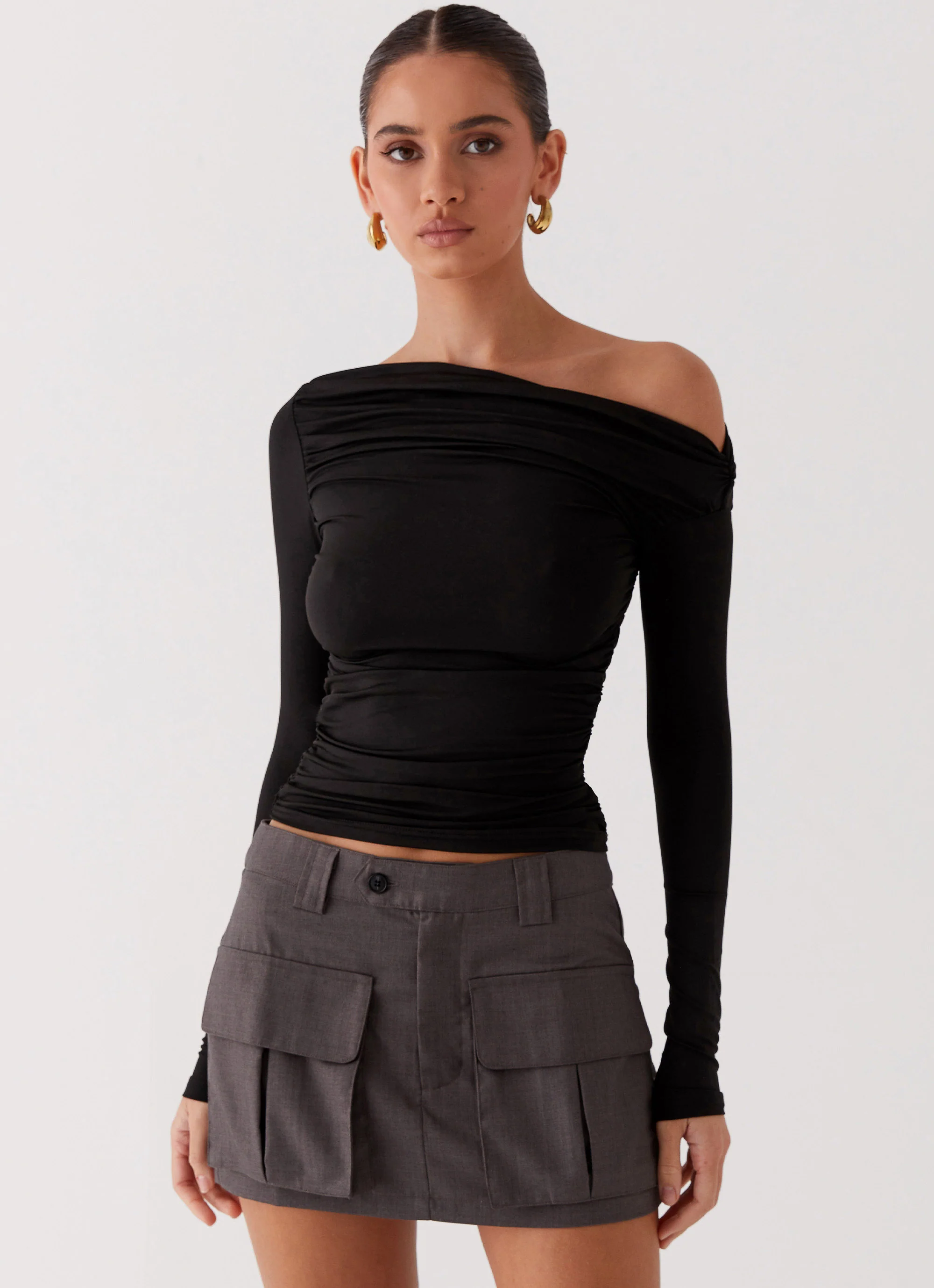 MESHKI Arabella Twist Shoulder Mini Dress - Black