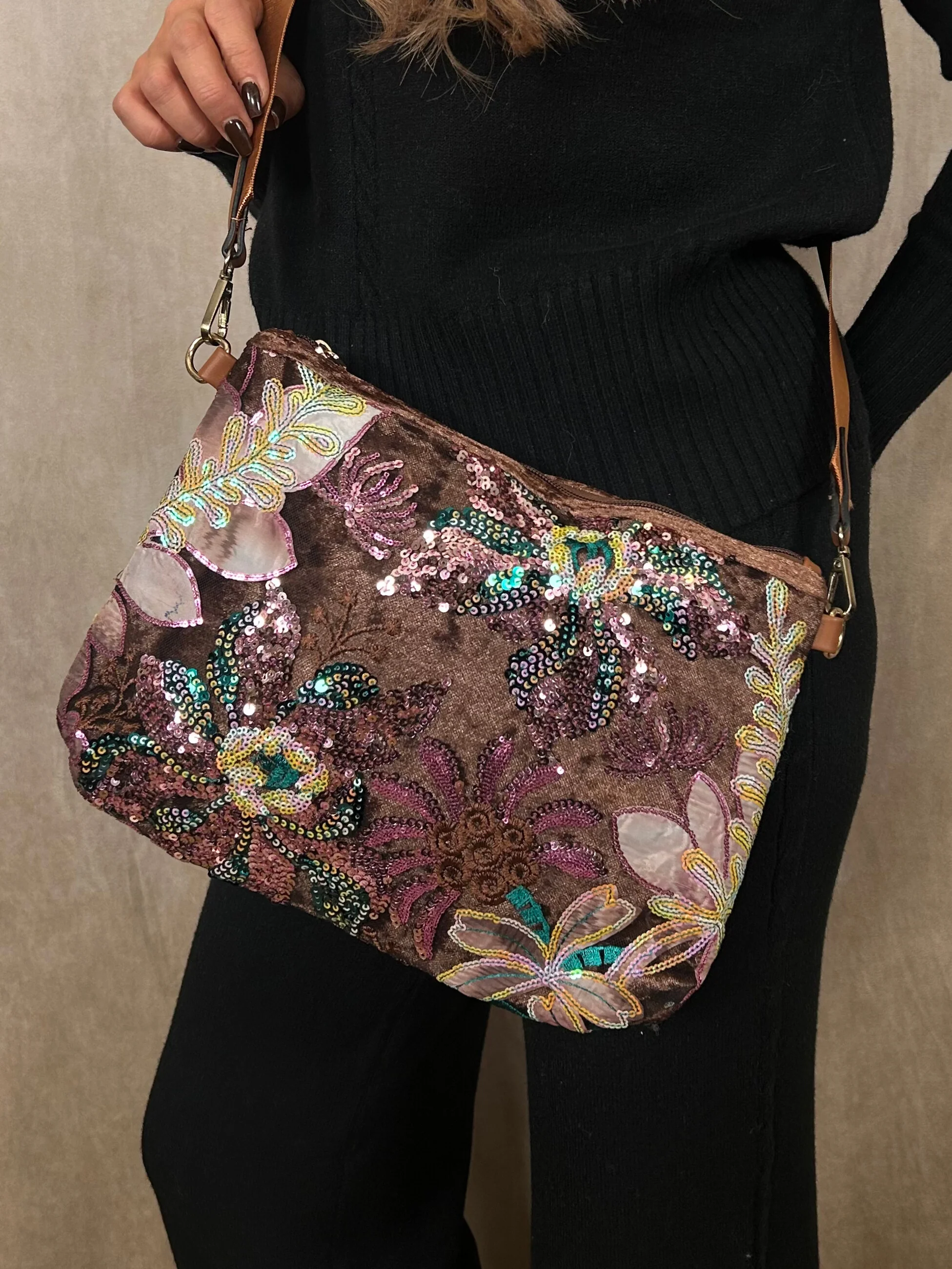 Velvet Flower Sequin Bag