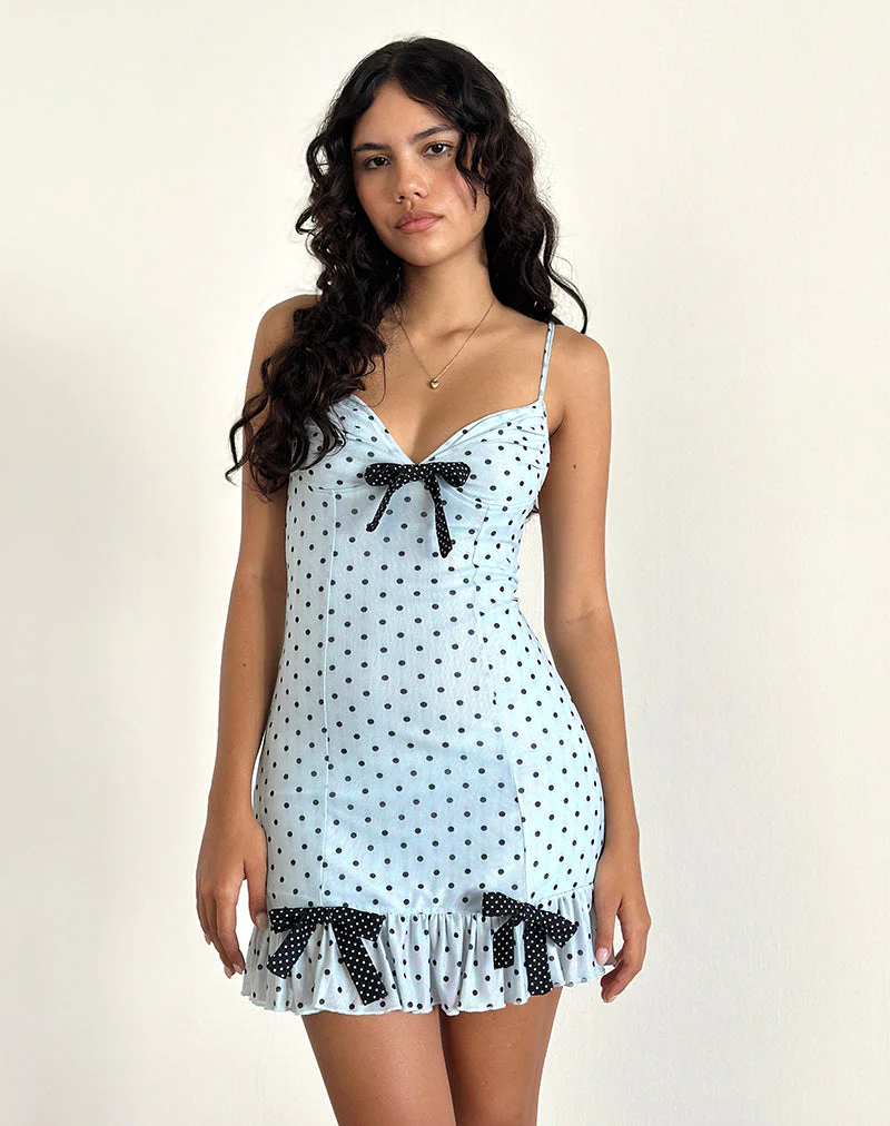 Khalil Mini Dress in Blue Black Basic Polka