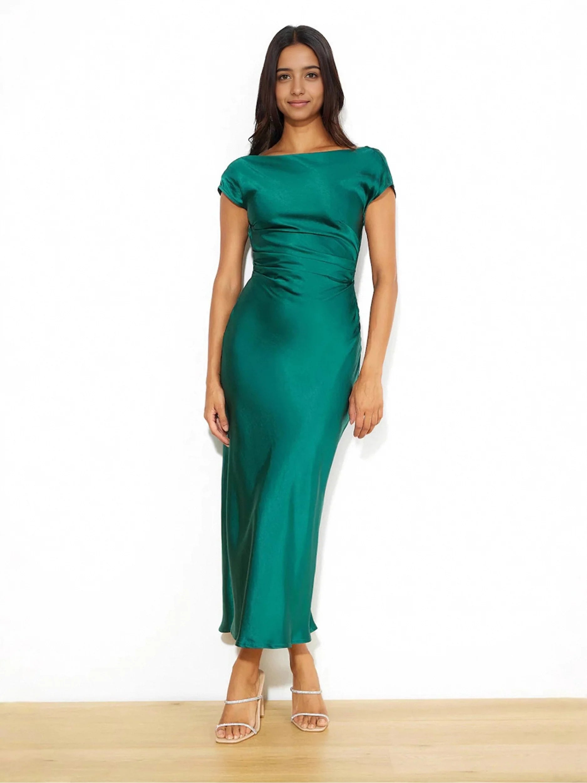 Indulge in one of your most Faithful Nights with this silky masterpiece. Featuring a cowl neckline, a low back and a very flowy finish. Style yours with strappy heels and waves.Â