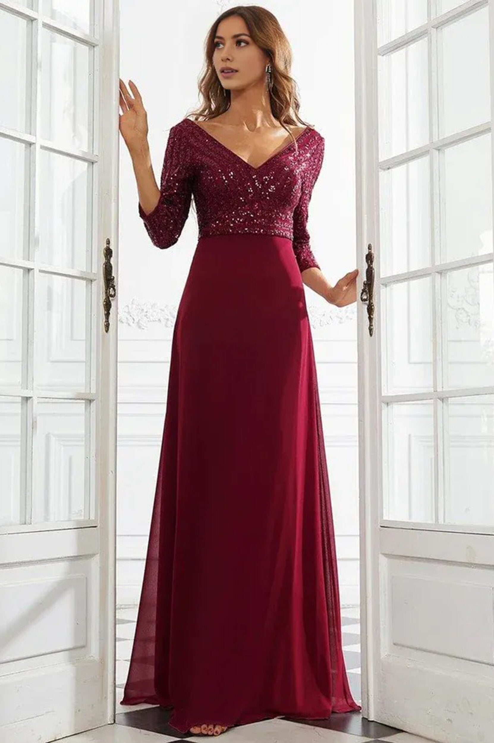 Sexy V Neck A-Line Sequin Evening Maxi Dresses