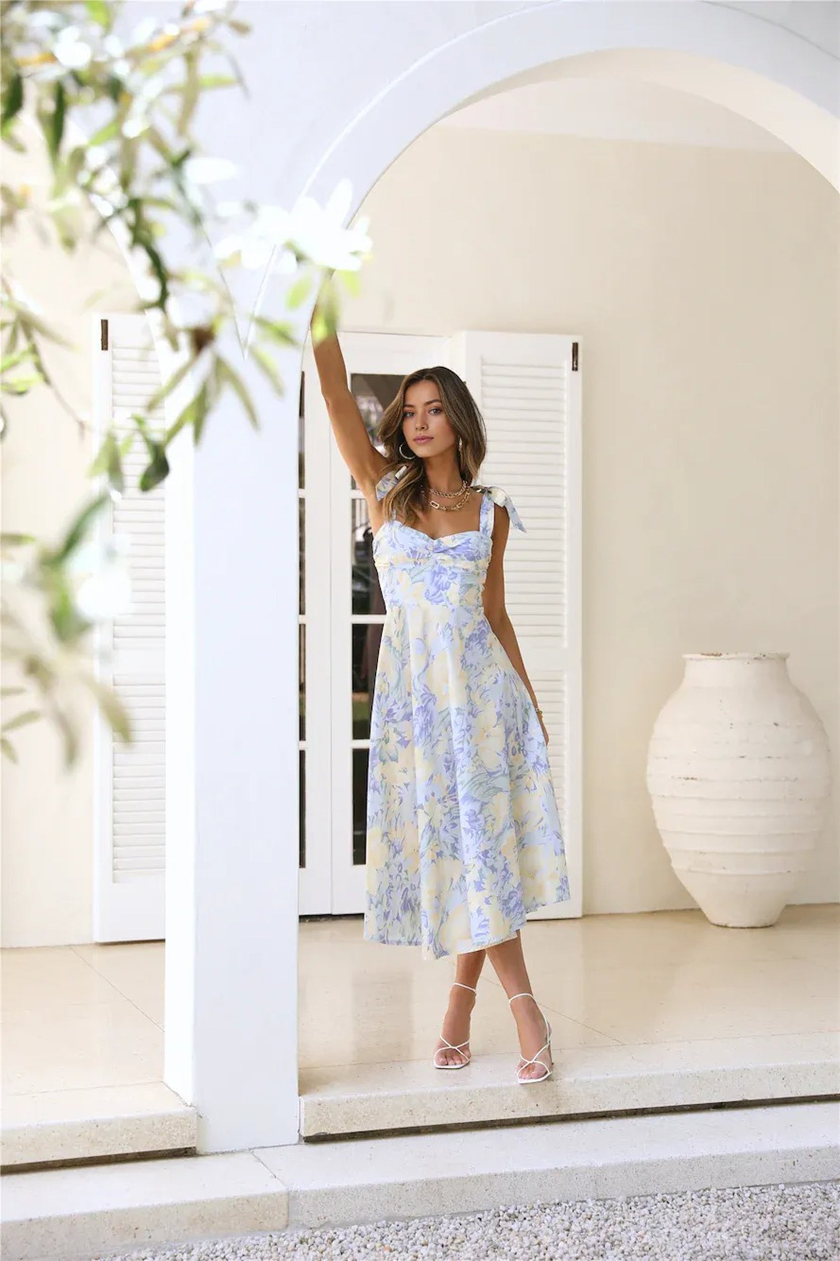 Girl, it's your chance to look cute and feel it too. The Tropical Mood Midi Dress features tie-up straps and a flowy skirt. Style with heels and amaze.