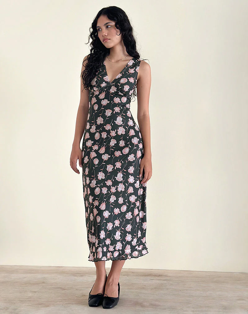 Melanie Midi Dress in Slinky Orchid Petals Pink