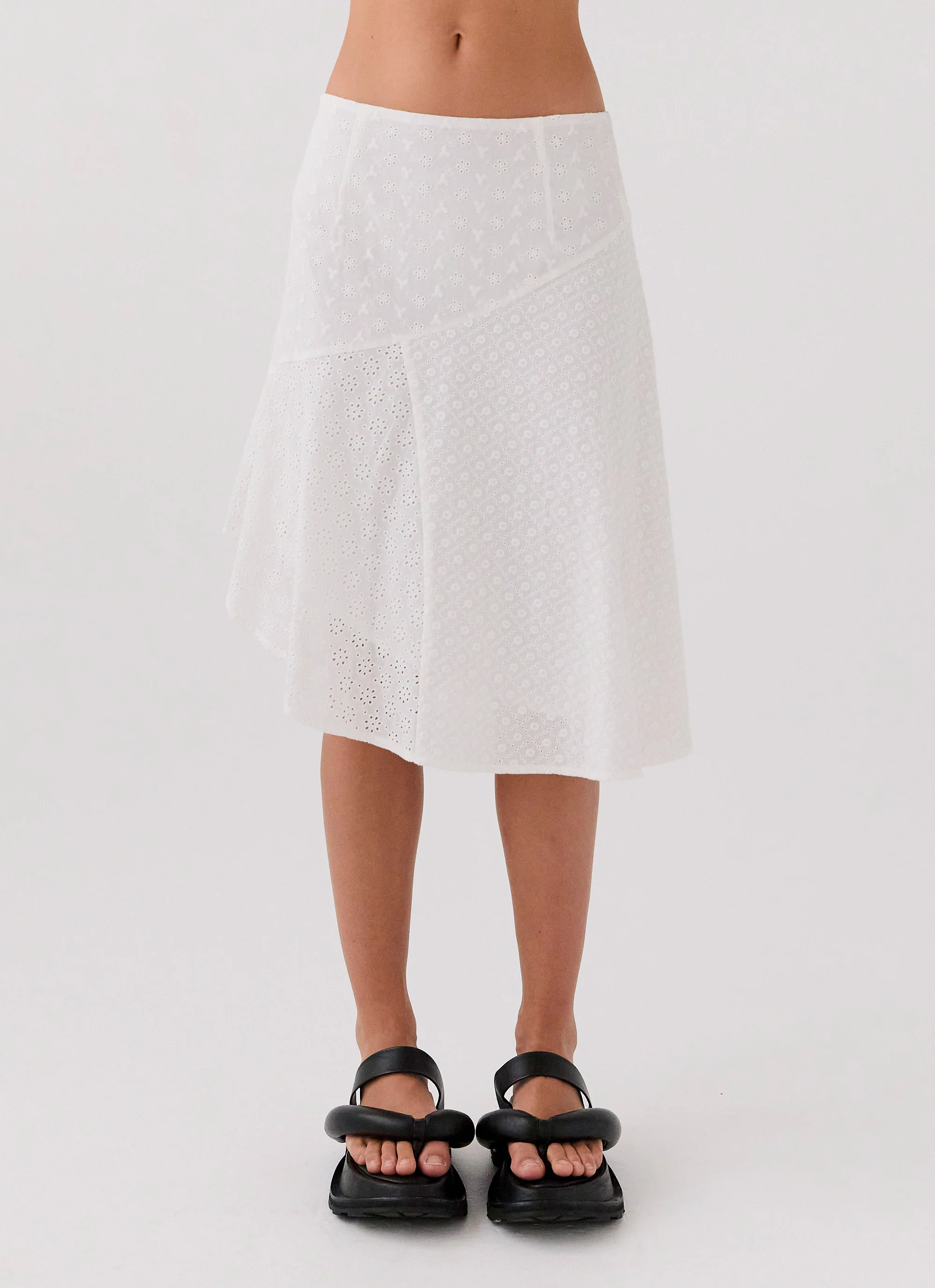 MESHKI Dewdrop Petal Midi Skirt - Lily White